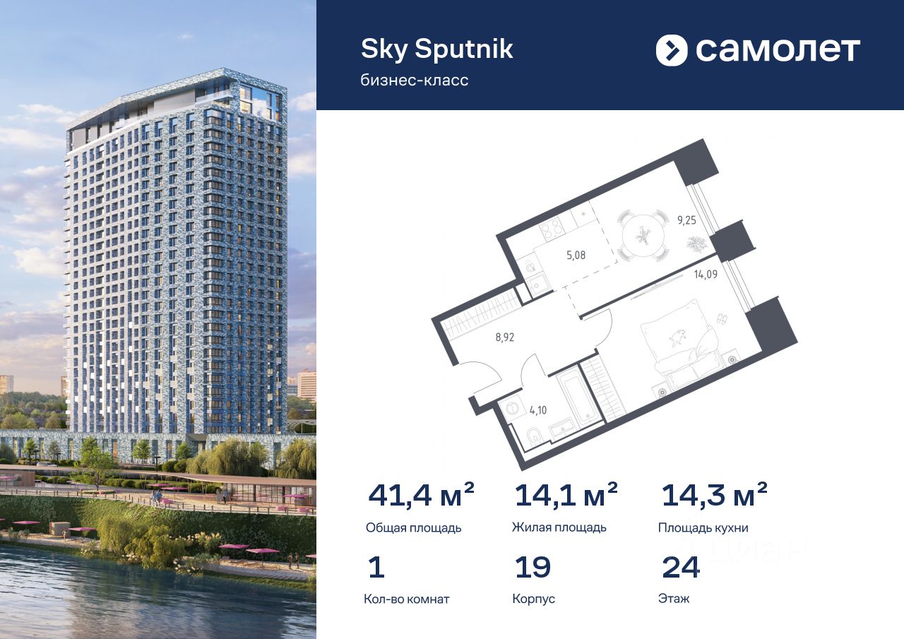 37 м² · Этаж 19 из 24