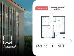 Цена указана с учётом скидки при 100%-й оплате, несубсидированной ипотеке, рассрочке (кроме программы ''Рассрочка 0%'').Субсидированная семейная ипотека. Полная стоимость кредита 20,963 - 23,237% годовых. Ставка 3,9% годовых. Первоначальный взнос от 20,01%. Сумма кредита до 12 млн. руб.В районе, утопающем в густой зелени лесов, многочисленных парков и скверов, продаётся 1-комнатная квартира площадью 36.50 кв.м с отделкой white box. Квартира расположена на 2 этаже в жилом комплексе комфорт-класса Level Лесной (компания Level Group/Левел групп). Отличная транспортная доступность- 25 мин. пешком до станции метро ''Пятницкое шоссе'',- 28 мин. на общественном транспорте до станции метро и МЦД-2 ''Волоколамская'',- 11 мин. на авто до МКАД,- 25 мин. на авто до ТТК.Продуманный архитектурный проект- Концепция проекта Level Лесной от бюро СПИЧ,- Высотность комплекса до 15 этажей с уникальными видами на лесные массивы и город,- Высота потолков до 3 м,- Современные окна высотой до 1,6 м, в части квартир предусмотрены окна в пол. Высота подоконников 0,6 м,РасположениеLevel Лесной строится в зелёной зоне ближайшего Подмосковья, г.о. Красногорск в посёлке Отрадное. Шаговая и автомобильная доступность до метро и больших транспортных артерий города. За 25 минут вы дойдёте до станции метро ''Пятницкое шоссе'' - одной из самых свободных станций Арбатско-Покровской линии, а за 20 минут на машине сможете доехать до станции метро ''Тушинская''. Район окружен роскошной зеленью лесов и парковых зон, занимающих территорию свыше 1 000 гектаров. Помимо благоприятной экологии, здесь множество возможностей для активного отдыха и поддержания физической формы. Облагороженная территории с полностью развитой инфраструктурой. На территории проекта находится детский сад и школа ''Светлые Горы'', которая входит в список лучших частных школ от Forbes Education (по данным на 2023г.). Кроме того, в пешей доступности расположено ещё 8 детских садов, а также запланировано открытие современной муниципальной школы. В непосредственной близости находятся сетевые супермаркеты и локальные магазины, аптеки, клиники, почта, библиотека, салоны красоты, рестораны, спортивные и творческие секции, развивающие детские центры. В 12 минутах пешком расположен торговый парк ''Отрада'' с продуктовым и строительным гипермаркетами, магазинами, кинотеатром и развлечениями для детей.Внутренняя инфраструктураМы знаем, как важно, чтобы магазины и сервисы были всегда рядом. В сданных корпусах Level Лесной уже расположена полностью готовая развитая инфраструктура. На первых этажах корпуса 27 предусмотрено ещё 14 коммерческих помещений.БлагоустройствоПродуманное пространство и аура приватного европейского городка рождают чувство лёгкости и расслабления у каждого, кто попадает на территорию проекта. Концепцию общественных площадок разработали в партнёрстве два архитектурных бюро: Highlight Architecture и SCAPE. В безопасных дворах без машин каждый обязательно найдёт себе место для вдох
