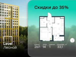 1-к, Левел Лесной ЖК, 24/3 Показать на карте