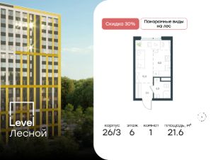 Цена указана с учётом скидкиВ районе, утопающем в густой зелени лесов, многочисленных парков и скверов, продаётся 1-комнатная квартира площадью 37.00 кв.м с отделкой white box. Квартира расположена на 12 этаже в жилом комплексе комфорт-класса Level Лесной (компания Level Group/Левел групп). Отличная транспортная доступность- 25 мин. пешком до станции метро ''Пятницкое шоссе'',- 28 мин. на общественном транспорте до станции метро и МЦД-2 ''Волоколамская'',- 11 мин. на авто до МКАД,- 25 мин. на авто до ТТК.Продуманный архитектурный проект- Концепция проекта Level Лесной от бюро СПИЧ,- Высотность комплекса до 15 этажей с уникальными видами на лесные массивы и город,- Высота потолков до 3 м,- Современные окна высотой до 1,6 м, в части квартир предусмотрены окна в пол. Высота подоконников 0,6 м,РасположениеLevel Лесной строится в зелёной зоне ближайшего Подмосковья, г.о. Красногорск в посёлке Отрадное. Шаговая и автомобильная доступность до метро и больших транспортных артерий города. За 25 минут вы дойдёте до станции метро ''Пятницкое шоссе'' - одной из самых свободных станций Арбатско-Покровской линии, а за 20 минут на машине сможете доехать до станции метро ''Тушинская''. Район окружен роскошной зеленью лесов и парковых зон, занимающих территорию свыше 1 000 гектаров. Помимо благоприятной экологии, здесь множество возможностей для активного отдыха и поддержания физической формы. Облагороженная территории с полностью развитой инфраструктурой. На территории проекта находится детский сад и школа ''Светлые Горы'', которая входит в список лучших частных школ от Forbes Education (по данным на 2023г.). Кроме того, в пешей доступности расположено ещё 8 детских садов, а также запланировано открытие современной муниципальной школы. В непосредственной близости находятся сетевые супермаркеты и локальные магазины, аптеки, клиники, почта, библиотека, салоны красоты, рестораны, спортивные и творческие секции, развивающие детские центры. В 12 минутах пешком расположен торговый парк ''Отрада'' с продуктовым и строительным гипермаркетами, магазинами, кинотеатром и развлечениями для детей.Внутренняя инфраструктураМы знаем, как важно, чтобы магазины и сервисы были всегда рядом. В сданных корпусах Level Лесной уже расположена полностью готовая развитая инфраструктура. На первых этажах корпуса 27 предусмотрено ещё 14 коммерческих помещений.БлагоустройствоПродуманное пространство и аура приватного европейского городка рождают чувство лёгкости и расслабления у каждого, кто попадает на территорию проекта. Концепцию общественных площадок разработали в партнёрстве два архитектурных бюро: Highlight Architecture и SCAPE. В безопасных дворах без машин каждый обязательно найдёт себе место для вдохновения, отдыха и спорта.