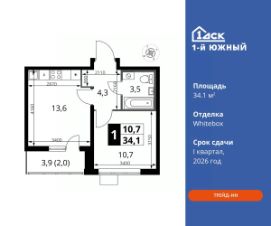 1-к, Первый Южный ЖК, 1.3 Показать на карте