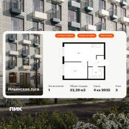 Продаётся 1-комн. квартира площадью 32,2 кв.м на 3 этаже 9 этажного дома (Корпус 2.13, Секция 1) проекта ПИК Ильинские луга. Светлый просторный подъезд на уровне земли, функциональная планировка, большие окна, c отделкой. Жилой район ''Ильинские луга'' находится в 10 километрах от МКАД по Новорижскому шоссе, в 20 минутах на автомобиле от станций метро ''Волоколамская'', ''Тушинская'' и ''Строгино''. В будущем ближе к проекту, в 9 минутах пути на машине, откроется станция ''Ильинская'' Рублёво-Архангельской линии, которая будет соединять Арбатско-Покровскую линию и Большую кольцевую линию.Сейчас в квартале начались продажи в корпусах 3.2, 3.3, 3.4, 3.5 и 3.6.''Ильинские луга'' — масштабный проект, в который входит девять детских садов, четыре школы и поликлиника. Он строится в престижном и экологичном районе среди лесов и памятников природы. За 5 минут от жилого квартала можно доехать до Рублёво-Успенского шоссе, а за 30 минут — до центра Москвы. До крупного торгового центра ''РИГАМОЛЛ'' всего 5 минут на автомобиле, а до ТЦ ''Твой дом'' и гипермаркета ''Глобус'' — 10 минут.В ''Ильинских лугах'' строятся только девятиэтажные дома — такая архитектура соответствует спокойной жизни за городом. В каждом дворе-парке есть места для отдыха, детские и спортивные площадки. А ещё, здесь уже открыт большой PlayHub ''Гравити'' — современное игровое пространство с космической тематикой, холмами, зонами для игр и отдыха жителей любого возраста.На первых этажах уже работают магазины, кафе и пекарни.Места для отдыха от ''Ильинских лугов'' тоже недалеко: 10 минут на машине — и вы в музее-усадьбе ''Архангельское''. Также рядом находится Лохин остров — памятник природы, где водятся речные черепахи, есть места для кемпинга и возможность сплавиться по реке. Артикул 927459 (Застройщик ООО ''СЗ ''ГРАДОЛИМП'')