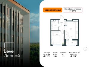 Цена указана с учётом скидки при 100%-й оплате, несубсидированной ипотеке, рассрочке (кроме программы ''Рассрочка 0%''). Субсидированная семейная ипотека. Полная стоимость кредита 20,963 - 23,237% годовых. Ставка 3,9% годовых. Первоначальный взнос от 20,01%. Сумма кредита до 12 млн. руб.В районе, утопающем в густой зелени лесов, многочисленных парков и скверов, продаётся 1-комнатная квартира площадью 31.90 кв.м без отделки. Квартира расположена на 12 этаже в жилом комплексе комфорт-класса Level Лесной (компания Level Group/Левел групп). Отличная транспортная доступность:- 25 мин. пешком до станции метро ''Пятницкое шоссе'',- 28 мин. на автобусе до станции метро и МЦД-2 ''Волоколамская'',- 11 мин. на авто до МКАД,- 25 мин. на авто до ТТК. Продуманный архитектурный проект:- Концепция проекта Level Лесной от бюро СПИЧ,- Высотность комплекса до 15 этажей с уникальными видами на лесные массивы и город, - Высота потолков до 3 м,- Современные окна высотой до 1,6 м, в части квартир предусмотрены окна в пол. Высота подоконников 0,6 м, Расположение:Level Лесной строится в зелёной зоне ближайшего Подмосковья, г.о. Красногорск в посёлке Отрадное. Шаговая и автомобильная доступность до метро и больших транспортных артерий города. За 25 минут вы дойдёте до станции метро ''Пятницкое шоссе'', а за 20 минут на машине сможете доехать до станции метро ''Тушинская''. Район окружен роскошной зеленью лесов и парковых зон, занимающих территорию свыше 1 000 гектаров. Помимо благоприятной экологии, здесь множество возможностей для активного отдыха и поддержания физической формы. Облагороженная территории с полностью развитой инфраструктурой. На территории проекта находится детский сад и школа ''Светлые Горы'', которая входит в список лучших частных школ от Forbes Education (по данным на 2023г.). Кроме того, в пешей доступности расположено ещё 8 детских садов, а также запланировано открытие современной муниципальной школы. В непосредственной близости находятся сетевые супермаркеты и локальные магазины, аптеки, клиники, почта, библиотека, салоны красоты, рестораны, спортивные и творческие секции, развивающие детские центры. В 12 минутах пешком расположен торговый парк ''Отрада'' с продуктовым и строительным гипермаркетами, магазинами, кинотеатром и развлечениями для детей. Внутренняя инфраструктура:Мы знаем, как важно, чтобы магазины и сервисы были всегда рядом. В сданных корпусах Level Лесной уже расположена полностью готовая развитая инфраструктура. На первых этажах корпуса 27 предусмотрено ещё 14 коммерческих помещений. Благоустройство:Продуманное пространство и аура приватного европейского городка рождают чувство лёгкости и расслабления у каждого, кто попадает на территорию проекта. Концепцию общественных площадок разработали в партнёрстве два архитектурных бюро: Highlight Architecture и SCAPE. В безопасных дворах без машин каждый обязательно найдёт себе место для вдохновения, отдыха и спорта.