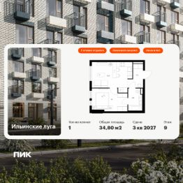 Продаётся 1-комн. квартира площадью 32,5 кв.м на 9 этаже 9 этажного дома (Корпус 2.10, Секция 1) проекта ПИК ''Ильинские луга''. Светлый просторный подъезд на уровне земли, функциональная планировка, большие окна, c отделкой. Жилой район ''Ильинские луга'' находится в 10 километрах от МКАД по Новорижскому шоссе, в 20 минутах на автомобиле от станций метро ''Волоколамская'', ''Тушинская'' и ''Строгино''. В будущем ближе к проекту, в 9 минутах на машине, откроется станция ''Ильинская''. ''Ильинские луга'' - масштабный проект, в который входит девять детских садов, четыре школы и поликлиника. Он строится в престижном и экологичном районе среди лесов и памятников природы. За 5 минут от жилого квартала можно доехать до Рублёво-Успенского шоссе, а за 30 минут - до центра Москвы. До крупного торгового центра ''РИГАМОЛЛ'' всего 5 минут на автомобиле, а до ТЦ ''Твой дом'' и гипермаркета ''Глобус'' - 10 минут. В ''Ильинских лугах'' строятся только девятиэтажные дома - такая архитектура соответствует спокойной жизни за городом. В каждом дворе-парке есть места для отдыха, детские и спортивные площадки. А ещё, здесь уже открыт большой PlayHub ''Гравити'' - современное игровое пространство с космической тематикой, холмами, зонами для игр и отдыха жителей любого возраста. На первых этажах уже работают магазины, кафе и пекарни. Места для отдыха от ''Ильинских лугов'' тоже недалеко: 10 минут на машине - и вы в музее-усадьбе ''Архангельское''. Также рядом находится Лохин остров - памятник природы, где водятся речные черепахи, есть места для кемпинга и возможность сплавиться по реке. Артикул 911969 (Застройщик ООО ''СЗ ''ГРАДОЛИМП'')