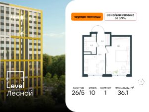 Цена указана с учётом скидки при 100%-й оплате, несубсидированной ипотеке, рассрочке (кроме программы ''Рассрочка 0%''). Субсидированная семейная ипотека. Полная стоимость кредита 20,963 - 23,237% годовых. Ставка 3,9% годовых. Первоначальный взнос от 20,01%. Сумма кредита до 12 млн. руб.В районе, утопающем в густой зелени лесов, многочисленных парков и скверов, продаётся 1-комнатная квартира площадью 36.10 кв.м с отделкой white box. Квартира расположена на 12 этаже в жилом комплексе комфорт-класса Level Лесной (компания Level Group/Левел групп). Отличная транспортная доступность:- 25 мин. пешком до станции метро ''Пятницкое шоссе'',- 28 мин. на автобусе до станции метро и МЦД-2 ''Волоколамская'',- 11 мин. на авто до МКАД,- 25 мин. на авто до ТТК. Продуманный архитектурный проект:- Концепция проекта Level Лесной от бюро СПИЧ,- Высотность комплекса до 15 этажей с уникальными видами на лесные массивы и город, - Высота потолков до 3 м,- Современные окна высотой до 1,6 м, в части квартир предусмотрены окна в пол. Высота подоконников 0,6 м, Расположение:Level Лесной строится в зелёной зоне ближайшего Подмосковья, г.о. Красногорск в посёлке Отрадное. Шаговая и автомобильная доступность до метро и больших транспортных артерий города. За 25 минут вы дойдёте до станции метро ''Пятницкое шоссе'', а за 20 минут на машине сможете доехать до станции метро ''Тушинская''. Район окружен роскошной зеленью лесов и парковых зон, занимающих территорию свыше 1 000 гектаров. Помимо благоприятной экологии, здесь множество возможностей для активного отдыха и поддержания физической формы. Облагороженная территории с полностью развитой инфраструктурой. На территории проекта находится детский сад и школа ''Светлые Горы'', которая входит в список лучших частных школ от Forbes Education (по данным на 2023г.). Кроме того, в пешей доступности расположено ещё 8 детских садов, а также запланировано открытие современной муниципальной школы. В непосредственной близости находятся сетевые супермаркеты и локальные магазины, аптеки, клиники, почта, библиотека, салоны красоты, рестораны, спортивные и творческие секции, развивающие детские центры. В 12 минутах пешком расположен торговый парк ''Отрада'' с продуктовым и строительным гипермаркетами, магазинами, кинотеатром и развлечениями для детей. Внутренняя инфраструктура:Мы знаем, как важно, чтобы магазины и сервисы были всегда рядом. В сданных корпусах Level Лесной уже расположена полностью готовая развитая инфраструктура. На первых этажах корпуса 27 предусмотрено ещё 14 коммерческих помещений. Благоустройство:Продуманное пространство и аура приватного европейского городка рождают чувство лёгкости и расслабления у каждого, кто попадает на территорию проекта. Концепцию общественных площадок разработали в партнёрстве два архитектурных бюро: Highlight Architecture и SCAPE. В безопасных дворах без машин каждый обязательно найдёт себе место для вдохновения, отдыха и спорта.