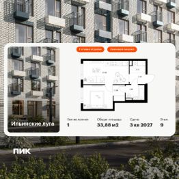 Продаётся 1-комн. квартира площадью 32,2 кв.м на 9 этаже 9 этажного дома (Корпус 2.10, Секция 2) проекта ПИК ''Ильинские луга''. Светлый просторный подъезд на уровне земли, функциональная планировка, большие окна, c отделкой. Жилой район ''Ильинские луга'' находится в 10 километрах от МКАД по Новорижскому шоссе, в 20 минутах на автомобиле от станций метро ''Волоколамская'', ''Тушинская'' и ''Строгино''. В будущем ближе к проекту, в 9 минутах на машине, откроется станция ''Ильинская''. ''Ильинские луга'' - масштабный проект, в который входит девять детских садов, четыре школы и поликлиника. Он строится в престижном и экологичном районе среди лесов и памятников природы. За 5 минут от жилого квартала можно доехать до Рублёво-Успенского шоссе, а за 30 минут - до центра Москвы. До крупного торгового центра ''РИГАМОЛЛ'' всего 5 минут на автомобиле, а до ТЦ ''Твой дом'' и гипермаркета ''Глобус'' - 10 минут. В ''Ильинских лугах'' строятся только девятиэтажные дома - такая архитектура соответствует спокойной жизни за городом. В каждом дворе-парке есть места для отдыха, детские и спортивные площадки. А ещё, здесь уже открыт большой PlayHub ''Гравити'' - современное игровое пространство с космической тематикой, холмами, зонами для игр и отдыха жителей любого возраста. На первых этажах уже работают магазины, кафе и пекарни. Места для отдыха от ''Ильинских лугов'' тоже недалеко: 10 минут на машине - и вы в музее-усадьбе ''Архангельское''. Также рядом находится Лохин остров - памятник природы, где водятся речные черепахи, есть места для кемпинга и возможность сплавиться по реке. Артикул 912073 (Застройщик ООО ''СЗ ''ГРАДОЛИМП'')