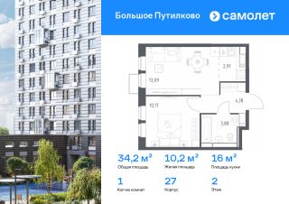 Строим кварталы для жизни с заботой о будущем. Предлагается 1-комнатная квартира комфорт-класса 34,23 кв.м в корпусе 27 на 2 этаже, в ЖК ''Большое Путилково''Квартира с чистовой отделкой. Доступность дополнительных опций уточняйте у застройщика.Приобрести квартиру возможно по специальным акциям от застройщика, с текущими условиями акций можно ознакомиться в блоке ''Акций''.Цена динамическая и может отличаться, уточняйте актуальность у застройщика.''Большое Путилково'' — масштабный жилой комплекс рядом с Алешкинским и Новогорским лесопарками. Мы уже построили и открыли 3 детских сада и школу, на первых этажах корпусов работают магазины, аптеки, кафе и пекарни. Удобное расположение проекта позволяет всего за 10 минут добраться до 4 станций метро.Во дворах обустроены детские площадки и зоны для отдыха. Все квартиры сдаются с готовой отделкой - переезжайте сразу после получения ключей!