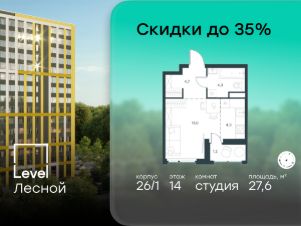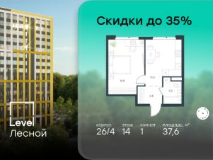Цена указана с учётом скидки при 100%-й оплате, несубсидированной ипотеке, рассрочке (кроме программы ''Рассрочка 0%'').В районе, утопающем в густой зелени лесов, многочисленных парков и скверов, продаётся 1-комнатная квартира площадью 37.70 кв.м с отделкой white box. Квартира расположена на 2 этаже в жилом комплексе комфорт-класса Level Лесной (компания Level Group/Левел групп). Отличная транспортная доступность:- 25 мин. пешком до станции метро ''Пятницкое шоссе'',- 28 мин. на автобусе до станции метро и МЦД-2 ''Волоколамская'',- 11 мин. на авто до МКАД,- 25 мин. на авто до ТТК. Продуманный архитектурный проект:- Концепция проекта Level Лесной от бюро СПИЧ,- Высотность комплекса до 15 этажей с уникальными видами на лесные массивы и город, - Высота потолков до 3 м,- Современные окна высотой до 1,6 м, в части квартир предусмотрены окна в пол. Высота подоконников 0,6 м, Расположение:Level Лесной строится в зелёной зоне ближайшего Подмосковья, г.о. Красногорск в посёлке Отрадное. Шаговая и автомобильная доступность до метро и больших транспортных артерий города. За 25 минут вы дойдёте до станции метро ''Пятницкое шоссе'', а за 20 минут на машине сможете доехать до станции метро ''Тушинская''. Район окружен роскошной зеленью лесов и парковых зон, занимающих территорию свыше 1 000 гектаров. Помимо благоприятной экологии, здесь множество возможностей для активного отдыха и поддержания физической формы. Облагороженная территории с полностью развитой инфраструктурой. На территории проекта находится детский сад и школа ''Светлые Горы'', которая входит в список лучших частных школ от Forbes Education (по данным на 2023г.). Кроме того, в пешей доступности расположено ещё 8 детских садов, а также запланировано открытие современной муниципальной школы. В непосредственной близости находятся сетевые супермаркеты и локальные магазины, аптеки, клиники, почта, библиотека, салоны красоты, рестораны, спортивные и творческие секции, развивающие детские центры. В 12 минутах пешком расположен торговый парк ''Отрада'' с продуктовым и строительным гипермаркетами, магазинами, кинотеатром и развлечениями для детей. Внутренняя инфраструктура:Мы знаем, как важно, чтобы магазины и сервисы были всегда рядом. В сданных корпусах Level Лесной уже расположена полностью готовая развитая инфраструктура. На первых этажах корпуса 27 предусмотрено ещё 14 коммерческих помещений. Благоустройство:Продуманное пространство и аура приватного европейского городка рождают чувство лёгкости и расслабления у каждого, кто попадает на территорию проекта. Концепцию общественных площадок разработали в партнёрстве два архитектурных бюро: Highlight Architecture и SCAPE. В безопасных дворах без машин каждый обязательно найдёт себе место для вдохновения, отдыха и спорта.