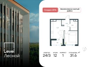 Цена указана с учётом скидкиВ районе, утопающем в густой зелени лесов, многочисленных парков и скверов, продаётся 1-комнатная квартира площадью 39.50 кв.м без отделки. Квартира расположена на 4 этаже в жилом комплексе комфорт-класса Level Лесной (компания Level Group/Левел групп). Отличная транспортная доступность- 25 мин. пешком до станции метро ''Пятницкое шоссе'',- 28 мин. на общественном транспорте до станции метро и МЦД-2 ''Волоколамская'',- 11 мин. на авто до МКАД,- 25 мин. на авто до ТТК.Продуманный архитектурный проект- Концепция проекта Level Лесной от бюро СПИЧ,- Высотность комплекса до 15 этажей с уникальными видами на лесные массивы и город,- Высота потолков до 3 м,- Современные окна высотой до 1,6 м, в части квартир предусмотрены окна в пол. Высота подоконников 0,6 м,РасположениеLevel Лесной строится в зелёной зоне ближайшего Подмосковья, г.о. Красногорск в посёлке Отрадное. Шаговая и автомобильная доступность до метро и больших транспортных артерий города. За 25 минут вы дойдёте до станции метро ''Пятницкое шоссе'' - одной из самых свободных станций Арбатско-Покровской линии, а за 20 минут на машине сможете доехать до станции метро ''Тушинская''. Район окружен роскошной зеленью лесов и парковых зон, занимающих территорию свыше 1 000 гектаров. Помимо благоприятной экологии, здесь множество возможностей для активного отдыха и поддержания физической формы. Облагороженная территории с полностью развитой инфраструктурой. На территории проекта находится детский сад и школа ''Светлые Горы'', которая входит в список лучших частных школ от Forbes Education (по данным на 2023г.). Кроме того, в пешей доступности расположено ещё 8 детских садов, а также запланировано открытие современной муниципальной школы. В непосредственной близости находятся сетевые супермаркеты и локальные магазины, аптеки, клиники, почта, библиотека, салоны красоты, рестораны, спортивные и творческие секции, развивающие детские центры. В 12 минутах пешком расположен торговый парк ''Отрада'' с продуктовым и строительным гипермаркетами, магазинами, кинотеатром и развлечениями для детей.Внутренняя инфраструктураМы знаем, как важно, чтобы магазины и сервисы были всегда рядом. В сданных корпусах Level Лесной уже расположена полностью готовая развитая инфраструктура. На первых этажах корпуса 27 предусмотрено ещё 14 коммерческих помещений.БлагоустройствоПродуманное пространство и аура приватного европейского городка рождают чувство лёгкости и расслабления у каждого, кто попадает на территорию проекта. Концепцию общественных площадок разработали в партнёрстве два архитектурных бюро: Highlight Architecture и SCAPE. В безопасных дворах без машин каждый обязательно найдёт себе место для вдохновения, отдыха и спорта.