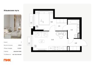 Продаётся 1-комн. квартира площадью 34,24 кв.м на 2 этаже 9 этажного дома (Корпус 4.1, Секция 6) проекта ПИК Ильинские луга. Светлый просторный подъезд на уровне земли, функциональная планировка, большие окна, . Жилой район ''Ильинские луга'' находится в 10 километрах от МКАД по Новорижскому шоссе, в 20 минутах на автомобиле от станций метро ''Волоколамская'', ''Тушинская'' и ''Строгино''. В будущем ближе к проекту, в 9 минутах пути на машине, откроется станция ''Ильинская'' Рублёво-Архангельской линии, которая будет соединять Арбатско-Покровскую линию и Большую кольцевую линию.Сейчас в квартале начались продажи в корпусах 3.2, 3.3, 3.4, 3.5 и 3.6.''Ильинские луга'' — масштабный проект, в который входит девять детских садов, четыре школы и поликлиника. Он строится в престижном и экологичном районе среди лесов и памятников природы. За 5 минут от жилого квартала можно доехать до Рублёво-Успенского шоссе, а за 30 минут — до центра Москвы. До крупного торгового центра ''РИГАМОЛЛ'' всего 5 минут на автомобиле, а до ТЦ ''Твой дом'' и гипермаркета ''Глобус'' — 10 минут.В ''Ильинских лугах'' строятся только девятиэтажные дома — такая архитектура соответствует спокойной жизни за городом. В каждом дворе-парке есть места для отдыха, детские и спортивные площадки. А ещё, здесь уже открыт большой PlayHub ''Гравити'' — современное игровое пространство с космической тематикой, холмами, зонами для игр и отдыха жителей любого возраста.На первых этажах уже работают магазины, кафе и пекарни.Места для отдыха от ''Ильинских лугов'' тоже недалеко: 10 минут на машине — и вы в музее-усадьбе ''Архангельское''. Также рядом находится Лохин остров — памятник природы, где водятся речные черепахи, есть места для кемпинга и возможность сплавиться по реке. Артикул 1016272 (Застройщик ООО ''СЗ ''ГРАДОЛИМП'')