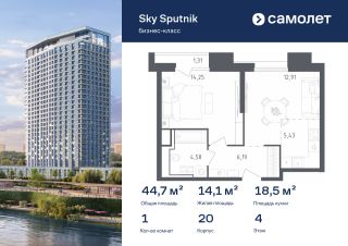 Строим кварталы для жизни с заботой о будущем. Предлагаются 1-комнатные апартаменты бизнес-класса 47,16 кв.м в корпусе 19 на 18 этаже, в Sky SputnikАпартаменты без отделки. Доступность опции ''отделка'' и возможность комплектации мебелью и декором уточняйте у застройщика.Прописка не предусмотрена в рамках юридического статуса - апартаменты.Приобрести апартаменты возможно по специальным акциям от застройщика, с текущими условиями акций можно ознакомиться в блоке ''Акций''.Цена динамическая и может отличаться, уточняйте актуальность у застройщика.Квартал находится на северо-западе Московской области, в 200 км от МКАД. Из окон домов открывается потрясающий вид на парк ''Липовая Роща'' и Живописную бухту. Уже открыта вся необходимая инфраструктура: 3 детских сада, частная школа, аптеки, коворкинги, магазины и кафе. В 2027 году рядом с проектом появится станция метро ''Липовая Роща''. До станции метро Строгино можно дойти за 25 минут. Все апартаменты сдаются с отделкой и мебелью.