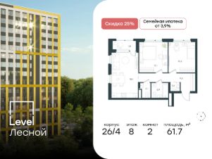 Цена указана с учётом скидкиВ районе, утопающем в густой зелени лесов, многочисленных парков и скверов, продаётся 2-комнатная квартира площадью 62.80 кв.м с отделкой white box. Квартира расположена на 2 этаже в жилом комплексе комфорт-класса Level Лесной (компания Level Group/Левел групп). Отличная транспортная доступность- 25 мин. пешком до станции метро ''Пятницкое шоссе'',- 28 мин. на общественном транспорте до станции метро и МЦД-2 ''Волоколамская'',- 11 мин. на авто до МКАД,- 25 мин. на авто до ТТК.Продуманный архитектурный проект- Концепция проекта Level Лесной от бюро СПИЧ,- Высотность комплекса до 15 этажей с уникальными видами на лесные массивы и город,- Высота потолков до 3 м,- Современные окна высотой до 1,6 м, в части квартир предусмотрены окна в пол. Высота подоконников 0,6 м,РасположениеLevel Лесной строится в зелёной зоне ближайшего Подмосковья, г.о. Красногорск в посёлке Отрадное. Шаговая и автомобильная доступность до метро и больших транспортных артерий города. За 25 минут вы дойдёте до станции метро ''Пятницкое шоссе'' - одной из самых свободных станций Арбатско-Покровской линии, а за 20 минут на машине сможете доехать до станции метро ''Тушинская''. Район окружен роскошной зеленью лесов и парковых зон, занимающих территорию свыше 1 000 гектаров. Помимо благоприятной экологии, здесь множество возможностей для активного отдыха и поддержания физической формы. Облагороженная территории с полностью развитой инфраструктурой. На территории проекта находится детский сад и школа ''Светлые Горы'', которая входит в список лучших частных школ от Forbes Education (по данным на 2023г.). Кроме того, в пешей доступности расположено ещё 8 детских садов, а также запланировано открытие современной муниципальной школы. В непосредственной близости находятся сетевые супермаркеты и локальные магазины, аптеки, клиники, почта, библиотека, салоны красоты, рестораны, спортивные и творческие секции, развивающие детские центры. В 12 минутах пешком расположен торговый парк ''Отрада'' с продуктовым и строительным гипермаркетами, магазинами, кинотеатром и развлечениями для детей.Внутренняя инфраструктураМы знаем, как важно, чтобы магазины и сервисы были всегда рядом. В сданных корпусах Level Лесной уже расположена полностью готовая развитая инфраструктура. На первых этажах корпуса 27 предусмотрено ещё 14 коммерческих помещений.БлагоустройствоПродуманное пространство и аура приватного европейского городка рождают чувство лёгкости и расслабления у каждого, кто попадает на территорию проекта. Концепцию общественных площадок разработали в партнёрстве два архитектурных бюро: Highlight Architecture и SCAPE. В безопасных дворах без машин каждый обязательно найдёт себе место для вдохновения, отдыха и спорта.