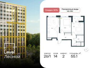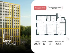Цена указана с учётом скидкиВ районе, утопающем в густой зелени лесов, многочисленных парков и скверов, продаётся 2-комнатная квартира площадью 62.80 кв.м без отделки. Квартира расположена на 12 этаже в жилом комплексе комфорт-класса Level Лесной (компания Level Group/Левел групп). Отличная транспортная доступность- 25 мин. пешком до станции метро ''Пятницкое шоссе'',- 28 мин. на общественном транспорте до станции метро и МЦД-2 ''Волоколамская'',- 11 мин. на авто до МКАД,- 25 мин. на авто до ТТК.Продуманный архитектурный проект- Концепция проекта Level Лесной от бюро СПИЧ,- Высотность комплекса до 15 этажей с уникальными видами на лесные массивы и город,- Высота потолков до 3 м,- Современные окна высотой до 1,6 м, в части квартир предусмотрены окна в пол. Высота подоконников 0,6 м,РасположениеLevel Лесной строится в зелёной зоне ближайшего Подмосковья, г.о. Красногорск в посёлке Отрадное. Шаговая и автомобильная доступность до метро и больших транспортных артерий города. За 25 минут вы дойдёте до станции метро ''Пятницкое шоссе'' - одной из самых свободных станций Арбатско-Покровской линии, а за 20 минут на машине сможете доехать до станции метро ''Тушинская''. Район окружен роскошной зеленью лесов и парковых зон, занимающих территорию свыше 1 000 гектаров. Помимо благоприятной экологии, здесь множество возможностей для активного отдыха и поддержания физической формы. Облагороженная территории с полностью развитой инфраструктурой. На территории проекта находится детский сад и школа ''Светлые Горы'', которая входит в список лучших частных школ от Forbes Education (по данным на 2023г.). Кроме того, в пешей доступности расположено ещё 8 детских садов, а также запланировано открытие современной муниципальной школы. В непосредственной близости находятся сетевые супермаркеты и локальные магазины, аптеки, клиники, почта, библиотека, салоны красоты, рестораны, спортивные и творческие секции, развивающие детские центры. В 12 минутах пешком расположен торговый парк ''Отрада'' с продуктовым и строительным гипермаркетами, магазинами, кинотеатром и развлечениями для детей.Внутренняя инфраструктураМы знаем, как важно, чтобы магазины и сервисы были всегда рядом. В сданных корпусах Level Лесной уже расположена полностью готовая развитая инфраструктура. На первых этажах корпуса 27 предусмотрено ещё 14 коммерческих помещений.БлагоустройствоПродуманное пространство и аура приватного европейского городка рождают чувство лёгкости и расслабления у каждого, кто попадает на территорию проекта. Концепцию общественных площадок разработали в партнёрстве два архитектурных бюро: Highlight Architecture и SCAPE. В безопасных дворах без машин каждый обязательно найдёт себе место для вдохновения, отдыха и спорта.