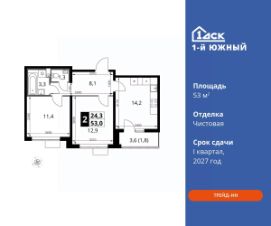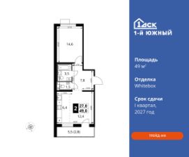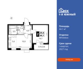 2-к, Первый Южный ЖК, 1.3 Показать на карте