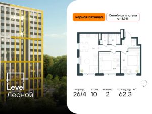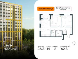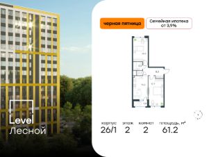Цена указана с учётом скидки при 100%-й оплате, несубсидированной ипотеке, рассрочке (кроме программы ''Рассрочка 0%''). Субсидированная семейная ипотека. Полная стоимость кредита 20,963 - 23,237% годовых. Ставка 3,9% годовых. Первоначальный взнос от 20,01%. Сумма кредита до 12 млн. руб.В районе, утопающем в густой зелени лесов, многочисленных парков и скверов, продаётся 2-комнатная квартира площадью 62.30 кв.м с отделкой white box. Квартира расположена на 12 этаже в жилом комплексе комфорт-класса Level Лесной (компания Level Group/Левел групп). Отличная транспортная доступность:- 25 мин. пешком до станции метро ''Пятницкое шоссе'',- 28 мин. на автобусе до станции метро и МЦД-2 ''Волоколамская'',- 11 мин. на авто до МКАД,- 25 мин. на авто до ТТК. Продуманный архитектурный проект:- Концепция проекта Level Лесной от бюро СПИЧ,- Высотность комплекса до 15 этажей с уникальными видами на лесные массивы и город, - Высота потолков до 3 м,- Современные окна высотой до 1,6 м, в части квартир предусмотрены окна в пол. Высота подоконников 0,6 м, Расположение:Level Лесной строится в зелёной зоне ближайшего Подмосковья, г.о. Красногорск в посёлке Отрадное. Шаговая и автомобильная доступность до метро и больших транспортных артерий города. За 25 минут вы дойдёте до станции метро ''Пятницкое шоссе'', а за 20 минут на машине сможете доехать до станции метро ''Тушинская''. Район окружен роскошной зеленью лесов и парковых зон, занимающих территорию свыше 1 000 гектаров. Помимо благоприятной экологии, здесь множество возможностей для активного отдыха и поддержания физической формы. Облагороженная территории с полностью развитой инфраструктурой. На территории проекта находится детский сад и школа ''Светлые Горы'', которая входит в список лучших частных школ от Forbes Education (по данным на 2023г.). Кроме того, в пешей доступности расположено ещё 8 детских садов, а также запланировано открытие современной муниципальной школы. В непосредственной близости находятся сетевые супермаркеты и локальные магазины, аптеки, клиники, почта, библиотека, салоны красоты, рестораны, спортивные и творческие секции, развивающие детские центры. В 12 минутах пешком расположен торговый парк ''Отрада'' с продуктовым и строительным гипермаркетами, магазинами, кинотеатром и развлечениями для детей. Внутренняя инфраструктура:Мы знаем, как важно, чтобы магазины и сервисы были всегда рядом. В сданных корпусах Level Лесной уже расположена полностью готовая развитая инфраструктура. На первых этажах корпуса 27 предусмотрено ещё 14 коммерческих помещений. Благоустройство:Продуманное пространство и аура приватного европейского городка рождают чувство лёгкости и расслабления у каждого, кто попадает на территорию проекта. Концепцию общественных площадок разработали в партнёрстве два архитектурных бюро: Highlight Architecture и SCAPE. В безопасных дворах без машин каждый обязательно найдёт себе место для вдохновения, отдыха и спорта.