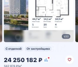 ОТЛИЧНАЯ ИНВЕСТИЦИЯ! В 2026 г. планируется открытие станции МЕТРО ЛИПОВАЯ РОЩА (Рублево-Архангельской линии) в 300 метрах, что приведет к росту цен на апартаменты в ЖК Sky Спутник на 20-25%.Видовая двушка в новом доме!Для информации: цена аналогичных апартаментов у застройщика в этом же корпусе на невидовом этаже: около 24 млн. руб. (см. фото 4).Первая линия домов от Живописной бухты! Бизнес-класс!Современный стиль, уют и комфорт!Продаётся 2-х комнатный апартамент, расположенный на 22-м этаже 28-и этажного современного монолитного дома!Срок передачи ключей - 4 квартал 2026 г. Общая площадь 43,6 м2. Очень удачная планировка: большая кухня-гостиная 19 м2, спальня 14 м2, просторная прихожая 6,3 м2, совмещенный санузел 4,3 м2. Изюминка квартиры - потрясающие виды на воду (Живописную бухту)!Квартира будет с РЕМОНТОМ и качественной КУХНЕЙ класса люкс!Новый современный высотный дом со скоростными лифтами и подземным паркингом, презентабельные входные группы, круглосуточная охрана. Жилой квартал с дворами без машин, с оригинальной концепцией организации дворового пространства. Современная городская среда с газонами, озеленением и ландшафтным дизайном. Есть детские площадки, спортивные тренажеры для взрослых, места для отдыха и многое другое.Необходимая инфраструктура в наличии - супермаркеты Мираторг, ВкусВилл, Пятёрочка, магазины у дома, вся сфера услуг, кофейни, кафе, пекарни, аптеки, пункты выдачи и постаматы маркетплейсов и т.д. Территория ЖК входит в зону покрытия всех каршерингов, самокатов и т.д., также здесь работают все службы доставки как по всей Москве. Два муниципальных детских сада. Своя школа в ЖК. Рядом с домом находится Липовая роща - отличный благоустроенный парк площадью 57 Га для прогулок, пробежек и т.д. (см. фото).Чистая экология запада Москвы. Чистые водоемы. В 3 минутах ходьбы - Живописная бухта с современными бесплатными зонами отдыха и пляжами. Рядом также Серебряный Бор и Строгинская пойма. Преобладающая роза ветров (из области в Москву) обеспечивает приток чистого воздуха.Отличная транспортная доступность. До м. Строгино 20-25 минут пешком. Также прямо из ЖК курсирует транспорт до м. Строгино, Мякинино, Крылатское, Щукинская. Для автомобилистов - прямой выезд на МКАД, до центра Москвы по проспекту Маршала Жукова 20 минут езды (без светофоров), рядом Новорижское шоссе.Продажа по переуступке. Возможна ипотека. Цена 17 440 000 руб.