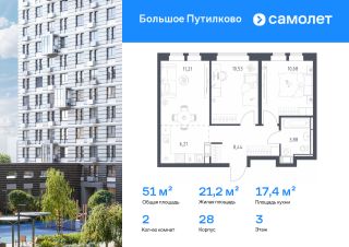 Предлагается 2-комнатная квартира комфорт-класса 51,22 кв.м в корпусе 28 на 21 этаже, в ЖК ''Большое Путилково''Квартира с чистовой отделкой. Доступность дополнительных опций уточняйте у застройщика.Приобрести квартиру возможно по специальным акциям от застройщика, с текущими условиями акций можно ознакомиться в блоке ''Акций''.Цена динамическая и может отличаться, уточняйте актуальность у застройщика.''Большое Путилково'' — масштабный жилой комплекс рядом с Алешкинским и Новогорским лесопарками. Мы уже построили и открыли 3 детских сада и школу, на первых этажах корпусов работают магазины, аптеки, кафе и пекарни. Удобное расположение проекта позволяет всего за 10 минут добраться до 4 станций метро.Во дворах обустроены детские площадки и зоны для отдыха. Все квартиры сдаются с готовой отделкой - переезжайте сразу после получения ключей!