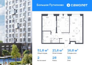 Строим кварталы для жизни с заботой о будущем. Предлагается 2-комнатная квартира комфорт-класса 51,75 кв.м в корпусе 28 на 11 этаже, в ЖК ''Большое Путилково''Квартира с чистовой отделкой. Доступность дополнительных опций уточняйте у застройщика.Приобрести квартиру возможно по специальным акциям от застройщика, с текущими условиями акций можно ознакомиться в блоке ''Акций''.Цена динамическая и может отличаться, уточняйте актуальность у застройщика.''Большое Путилково'' — масштабный жилой комплекс рядом с Алешкинским и Новогорским лесопарками. Мы уже построили и открыли 3 детских сада и школу, на первых этажах корпусов работают магазины, аптеки, кафе и пекарни. Удобное расположение проекта позволяет всего за 10 минут добраться до 4 станций метро.Во дворах обустроены детские площадки и зоны для отдыха. Все квартиры сдаются с готовой отделкой - переезжайте сразу после получения ключей!