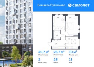 Строим кварталы для жизни с заботой о будущем. Предлагается 2-комнатная квартира комфорт-класса 49,67 кв.м в корпусе 28 на 11 этаже, в ЖК ''Большое Путилково''Квартира с чистовой отделкой. Доступность дополнительных опций уточняйте у застройщика.Приобрести квартиру возможно по специальным акциям от застройщика, с текущими условиями акций можно ознакомиться в блоке ''Акций''.Цена динамическая и может отличаться, уточняйте актуальность у застройщика.''Большое Путилково'' — масштабный жилой комплекс рядом с Алешкинским и Новогорским лесопарками. Мы уже построили и открыли 3 детских сада и школу, на первых этажах корпусов работают магазины, аптеки, кафе и пекарни. Удобное расположение проекта позволяет всего за 10 минут добраться до 4 станций метро.Во дворах обустроены детские площадки и зоны для отдыха. Все квартиры сдаются с готовой отделкой - переезжайте сразу после получения ключей!