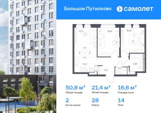 Строим кварталы для жизни с заботой о будущем. Предлагается 2-комнатная квартира комфорт-класса 50,79 кв.м в корпусе 28 на 14 этаже, в ЖК ''Большое Путилково''Квартира без отделки. Доступность опции ''отделка'' и возможность комплектации мебелью и декором уточняйте у застройщика.Приобрести квартиру возможно по специальным акциям от застройщика, с текущими условиями акций можно ознакомиться в блоке ''Акций''.Цена динамическая и может отличаться, уточняйте актуальность у застройщика.''Большое Путилково'' — масштабный жилой комплекс рядом с Алешкинским и Новогорским лесопарками. Мы уже построили и открыли 3 детских сада и школу, на первых этажах корпусов работают магазины, аптеки, кафе и пекарни. Удобное расположение проекта позволяет всего за 10 минут добраться до 4 станций метро.Во дворах обустроены детские площадки и зоны для отдыха. Все квартиры сдаются с готовой отделкой - переезжайте сразу после получения ключей!