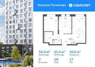 Строим кварталы для жизни с заботой о будущем. Предлагается 2-комнатная квартира комфорт-класса 50,9 кв.м в корпусе 28 на 17 этаже, в ЖК ''Большое Путилково''Квартира с чистовой отделкой. Доступность дополнительных опций уточняйте у застройщика.Приобрести квартиру возможно по специальным акциям от застройщика, с текущими условиями акций можно ознакомиться в блоке ''Акций''.Цена динамическая и может отличаться, уточняйте актуальность у застройщика.''Большое Путилково'' — масштабный жилой комплекс рядом с Алешкинским и Новогорским лесопарками. Мы уже построили и открыли 3 детских сада и школу, на первых этажах корпусов работают магазины, аптеки, кафе и пекарни. Удобное расположение проекта позволяет всего за 10 минут добраться до 4 станций метро.Во дворах обустроены детские площадки и зоны для отдыха. Все квартиры сдаются с готовой отделкой - переезжайте сразу после получения ключей!