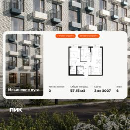 Продаётся 2-комн. квартира площадью 56,31 кв.м на 7 этаже 9 этажного дома (Корпус 4.1, Секция 3) проекта ПИК Ильинские луга. Светлый просторный подъезд на уровне земли, функциональная планировка, большие окна, c отделкой. Жилой район ''Ильинские луга'' находится в 10 километрах от МКАД по Новорижскому шоссе, в 20 минутах на автомобиле от станций метро ''Волоколамская'', ''Тушинская'' и ''Строгино''. В будущем ближе к проекту, в 9 минутах пути на машине, откроется станция ''Ильинская'' Рублёво-Архангельской линии, которая будет соединять Арбатско-Покровскую линию и Большую кольцевую линию.Сейчас в квартале начались продажи в корпусах 3.2, 3.3, 3.4, 3.5 и 3.6.''Ильинские луга'' — масштабный проект, в который входит девять детских садов, четыре школы и поликлиника. Он строится в престижном и экологичном районе среди лесов и памятников природы. За 5 минут от жилого квартала можно доехать до Рублёво-Успенского шоссе, а за 30 минут — до центра Москвы. До крупного торгового центра ''РИГАМОЛЛ'' всего 5 минут на автомобиле, а до ТЦ ''Твой дом'' и гипермаркета ''Глобус'' — 10 минут.В ''Ильинских лугах'' строятся только девятиэтажные дома — такая архитектура соответствует спокойной жизни за городом. В каждом дворе-парке есть места для отдыха, детские и спортивные площадки. А ещё, здесь уже открыт большой PlayHub ''Гравити'' — современное игровое пространство с космической тематикой, холмами, зонами для игр и отдыха жителей любого возраста.На первых этажах уже работают магазины, кафе и пекарни.Места для отдыха от ''Ильинских лугов'' тоже недалеко: 10 минут на машине — и вы в музее-усадьбе ''Архангельское''. Также рядом находится Лохин остров — памятник природы, где водятся речные черепахи, есть места для кемпинга и возможность сплавиться по реке. Артикул 1015988 (Застройщик ООО ''СЗ ''ГРАДОЛИМП'')
