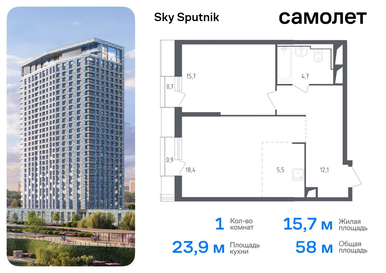 Предлагаются 1-комнатные апартаменты бизнес-класса 58,03 кв.м в корпусе 19 на 8 этаже, в Sky Sputnik Апартаменты без отделки. Доступность опции ''отделка'' и возможность комплектации мебелью и декором уточняйте у застройщика. Прописка не предусмотрена в рамках юридического статуса - апартаменты. Планировкой предусмотрены: Коридор_1 - 12,58 м² Кухня-ниша - 5,61 м² Комната_1 - 15,69 м² Комната_2 - 18,14 м² СУ_1 - 4,36 м² Лоджия_1_без_коэфф, - 0,92 м² Лоджия_2_без_коэфф, - 0,73 м² Приобрести апартаменты возможно по специальным акциям от застройщика, с текущими условиями акций можно ознакомиться в блоке Акций. Цена динамическая и может отличаться, уточняйте актуальность у застройщика. Квартал находится на северо-западе Московской области, в 200 км от МКАД. Из окон домов открывается потрясающий вид на парк ''Липовая Роща'' и Живописную бухту. Уже открыта вся необходимая инфраструктура: 3 детских сада, частная школа, аптеки, коворкинги, магазины и кафе. В 2027 году рядом с проектом появится станция метро ''Липовая Роща''. До станции метро Строгино можно дойти за 25 минут. Все апартаменты сдаются с отделкой и мебелью.