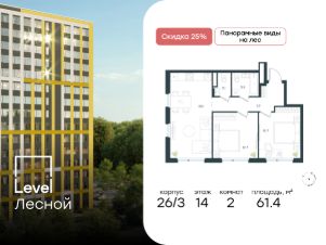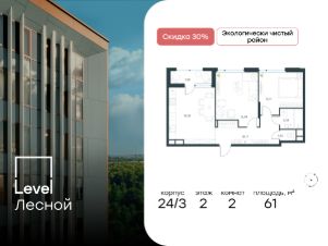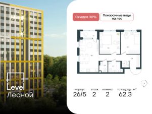 Цена указана с учётом скидкиВ районе, утопающем в густой зелени лесов, многочисленных парков и скверов, продаётся 2-комнатная квартира площадью 62.40 кв.м с отделкой white box. Квартира расположена на 12 этаже в жилом комплексе комфорт-класса Level Лесной (компания Level Group/Левел групп). Отличная транспортная доступность- 25 мин. пешком до станции метро ''Пятницкое шоссе'',- 28 мин. на общественном транспорте до станции метро и МЦД-2 ''Волоколамская'',- 11 мин. на авто до МКАД,- 25 мин. на авто до ТТК.Продуманный архитектурный проект- Концепция проекта Level Лесной от бюро СПИЧ,- Высотность комплекса до 15 этажей с уникальными видами на лесные массивы и город,- Высота потолков до 3 м,- Современные окна высотой до 1,6 м, в части квартир предусмотрены окна в пол. Высота подоконников 0,6 м,РасположениеLevel Лесной строится в зелёной зоне ближайшего Подмосковья, г.о. Красногорск в посёлке Отрадное. Шаговая и автомобильная доступность до метро и больших транспортных артерий города. За 25 минут вы дойдёте до станции метро ''Пятницкое шоссе'' - одной из самых свободных станций Арбатско-Покровской линии, а за 20 минут на машине сможете доехать до станции метро ''Тушинская''. Район окружен роскошной зеленью лесов и парковых зон, занимающих территорию свыше 1 000 гектаров. Помимо благоприятной экологии, здесь множество возможностей для активного отдыха и поддержания физической формы. Облагороженная территории с полностью развитой инфраструктурой. На территории проекта находится детский сад и школа ''Светлые Горы'', которая входит в список лучших частных школ от Forbes Education (по данным на 2023г.). Кроме того, в пешей доступности расположено ещё 8 детских садов, а также запланировано открытие современной муниципальной школы. В непосредственной близости находятся сетевые супермаркеты и локальные магазины, аптеки, клиники, почта, библиотека, салоны красоты, рестораны, спортивные и творческие секции, развивающие детские центры. В 12 минутах пешком расположен торговый парк ''Отрада'' с продуктовым и строительным гипермаркетами, магазинами, кинотеатром и развлечениями для детей.Внутренняя инфраструктураМы знаем, как важно, чтобы магазины и сервисы были всегда рядом. В сданных корпусах Level Лесной уже расположена полностью готовая развитая инфраструктура. На первых этажах корпуса 27 предусмотрено ещё 14 коммерческих помещений.БлагоустройствоПродуманное пространство и аура приватного европейского городка рождают чувство лёгкости и расслабления у каждого, кто попадает на территорию проекта. Концепцию общественных площадок разработали в партнёрстве два архитектурных бюро: Highlight Architecture и SCAPE. В безопасных дворах без машин каждый обязательно найдёт себе место для вдохновения, отдыха и спорта.