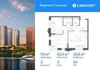 Строим кварталы для жизни с заботой о будущем. Предлагается 2-комнатная квартира комфорт-класса 53 кв.м в корпусе 3 на 24 этаже, в ЖК ''Квартал Строгино''Квартира без отделки. Доступность опции ''отделка'' и возможность комплектации мебелью и декором уточняйте у застройщика.Приобрести квартиру возможно по специальным акциям от застройщика, с текущими условиями акций можно ознакомиться в блоке ''Акций''.Цена динамическая и может отличаться, уточняйте актуальность у застройщика.В жилом комплексе ''Квартал Строгино'' вас ждет широкий выбор досуга. Рядом МКАД и выезд на Новорижское шоссе и станции метро ''Строгино'' и ''Мякинино''. В пешей доступности — Живописная бухта, можно доехать до ''Липовой Рощи'' и ''Серебряного бора''. На территории комплекса будут 2 детских сада, школа и поликлиника. Двор-парк с площадками, велодорожками и паркингами. В лобби есть помещения для колясок. Квартиры с готовой отделкой и видом на бухту.