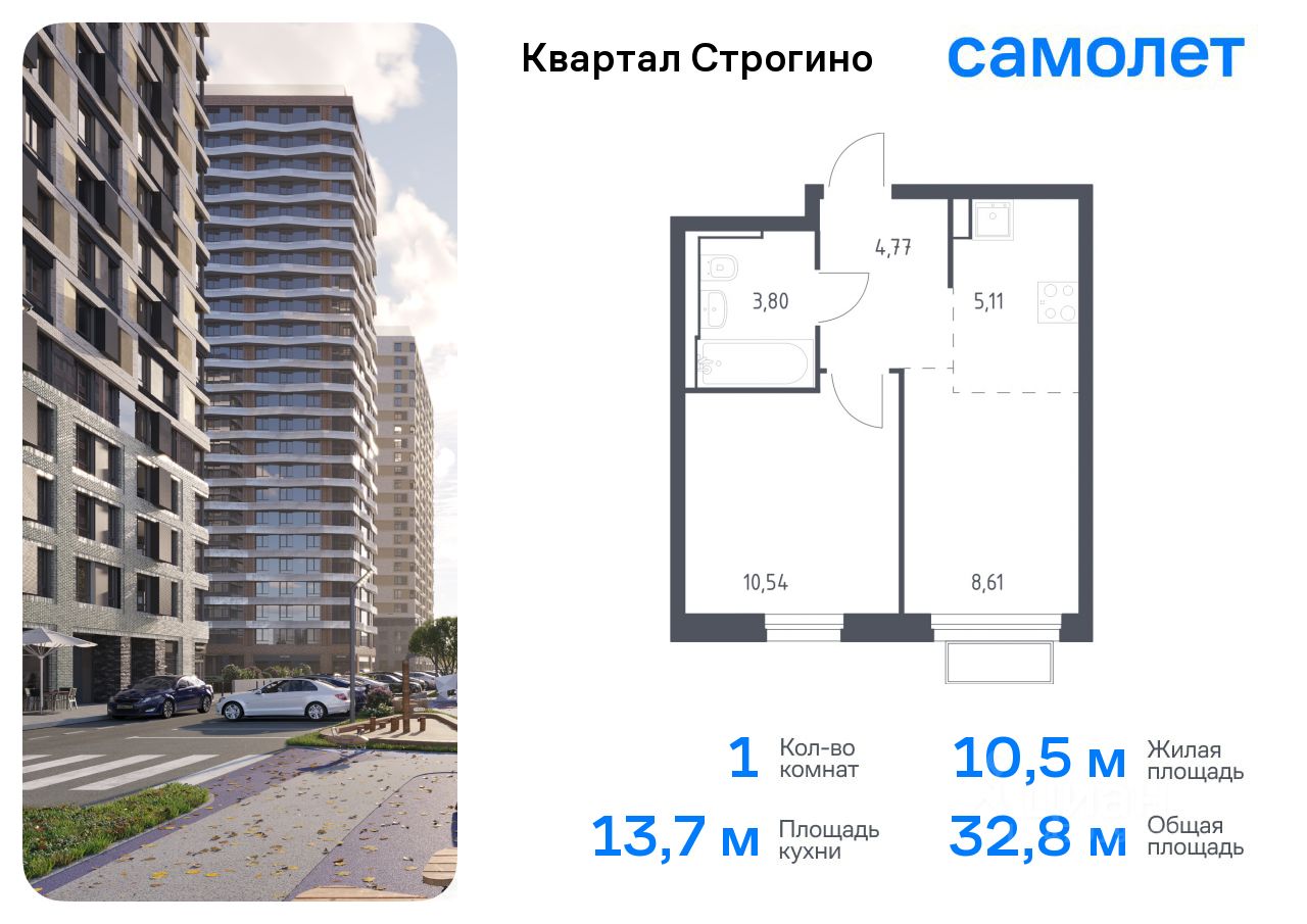 Предлагается 1-комнатная квартира комфорт-класса 32,83 кв.м в корпусе 2 на 16 этаже, в ЖК ''Квартал Строгино'' Квартира с чистовой отделкой. Доступность дополнительных опций уточняйте у застройщика. Планировкой предусмотрены: Коридор - 4,77 м² Кухня-ниша - 5,11 м² Жилая_комната - 8,61 м² Жилая_комната - 8,61 м² СУ - 3,8 м² Приобрести квартиру возможно по специальным акциям от застройщика, с текущими условиями акций можно ознакомиться в блоке Акций. Цена динамическая и может отличаться, уточняйте актуальность у застройщика. В жилом комплексе ''Квартал Строгино'' вас ждет широкий выбор досуга. Рядом МКАД и выезд на Новорижское шоссе и станции метро ''Строгино'' и ''Мякинино''. В пешей доступности — Живописная бухта, можно доехать до ''Липовой Рощи'' и ''Серебряного бора''. На территории комплекса будут 2 детских сада, школа и поликлиника. Двор-парк с площадками, велодорожками и паркингами. В лобби есть помещения для колясок. Квартиры с готовой отделкой и видом на бухту.