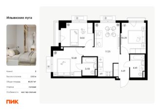 Продаётся 3-комн. квартира площадью 68,5 кв.м на 3 этаже 9 этажного дома (Корпус 4.1, Секция 4) проекта ПИК Ильинские луга. Светлый просторный подъезд на уровне земли, функциональная планировка, большие окна, c отделкой. Жилой район ''Ильинские луга'' находится в 10 километрах от МКАД по Новорижскому шоссе, в 20 минутах на автомобиле от станций метро ''Волоколамская'', ''Тушинская'' и ''Строгино''. В будущем ближе к проекту, в 9 минутах пути на машине, откроется станция ''Ильинская'' Рублёво-Архангельской линии, которая будет соединять Арбатско-Покровскую линию и Большую кольцевую линию.Сейчас в квартале начались продажи в корпусах 3.2, 3.3, 3.4, 3.5 и 3.6.''Ильинские луга'' — масштабный проект, в который входит девять детских садов, четыре школы и поликлиника. Он строится в престижном и экологичном районе среди лесов и памятников природы. За 5 минут от жилого квартала можно доехать до Рублёво-Успенского шоссе, а за 30 минут — до центра Москвы. До крупного торгового центра ''РИГАМОЛЛ'' всего 5 минут на автомобиле, а до ТЦ ''Твой дом'' и гипермаркета ''Глобус'' — 10 минут.В ''Ильинских лугах'' строятся только девятиэтажные дома — такая архитектура соответствует спокойной жизни за городом. В каждом дворе-парке есть места для отдыха, детские и спортивные площадки. А ещё, здесь уже открыт большой PlayHub ''Гравити'' — современное игровое пространство с космической тематикой, холмами, зонами для игр и отдыха жителей любого возраста.На первых этажах уже работают магазины, кафе и пекарни.Места для отдыха от ''Ильинских лугов'' тоже недалеко: 10 минут на машине — и вы в музее-усадьбе ''Архангельское''. Также рядом находится Лохин остров — памятник природы, где водятся речные черепахи, есть места для кемпинга и возможность сплавиться по реке. Артикул 1016040 (Застройщик ООО ''СЗ ''ГРАДОЛИМП'')