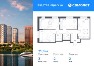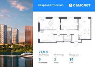 Предлагается 3-комнатная квартира комфорт-класса 72,1 кв.м в корпусе 2 на 19 этаже, в ЖК ''Квартал Строгино''Квартира без отделки. Доступность опции ''отделка'' и возможность комплектации мебелью и декором уточняйте у застройщика.Приобрести квартиру возможно по специальным акциям от застройщика, с текущими условиями акций можно ознакомиться в блоке Акций.Цена динамическая и может отличаться, уточняйте актуальность у застройщика.В жилом комплексе ''Квартал Строгино'' вас ждет широкий выбор досуга. Рядом МКАД и выезд на Новорижское шоссе и станции метро ''Строгино'' и ''Мякинино''. В пешей доступности — Живописная бухта, можно доехать до ''Липовой Рощи'' и ''Серебряного бора''. На территории комплекса будут 2 детских сада, школа и поликлиника. Двор-парк с площадками, велодорожками и паркингами. В лобби есть помещения для колясок. Квартиры с готовой отделкой и видом на бухту.