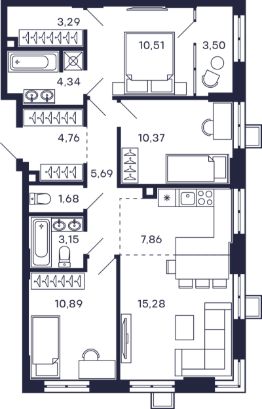 Предлагается 3-комнатная квартира комфорт-класса 76,62 кв.м в корпусе 28 на 9 этаже, в ЖК ''Большое Путилково''Квартира с чистовой отделкой. Доступность дополнительных опций уточняйте на сайте застройщика.Планировкой предусмотрены:Коридор_1 - 10,38 м²Кухня-ниша_1 - 4,89 м²Гостиная_1 - 11,64 м²Жилая_комната_1 - 12,61 м²Жилая_комната_2 - 11,09 м²Жилая_комната_3 - 15,29 м²СУ_1 - 2,37 м²СУ_2 - 3,9 м²Гардеробная_1 - 3,81 м²Балкон_1 - 0,64 м²Приобрести квартиру возможно по специальным акциям от застройщика, с текущими условиями акций можно ознакомиться в блоке Акций.Цена динамическая и может отличаться, уточняйте актуальность у застройщика.''Большое Путилково'' — масштабный жилой комплекс рядом с Алешкинским и Новогорским лесопарками. Мы уже построили и открыли 3 детских сада и школу, на первых этажах корпусов работают магазины, аптеки, кафе и пекарни. Удобное расположение проекта позволяет всего за 10 минут добраться до 4 станций метро.Во дворах обустроены детские площадки и зоны для отдыха. Все квартиры сдаются с готовой отделкой - переезжайте сразу после получения ключей!