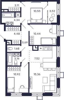 Продаётся 3-комнатная квартира в строящемся доме (Корпус 8), срок сдачи: II-кв. 2025, общей площадью 73.92 кв.м., на 11 этаже. Многофункциональный комплекс ''Тетрис'' будет построен в Красногорске - районном центре МО в Железнодорожном переулке.От ЖК до МКАД - примерно 2,7 км по Волоколамскому шоссе, до которого от комплекса менее 100 м.Ближе всего к ЖК находятся станции метро ''Мякинино'' (2,6 км), ''Волоколамская'' (3 км) ''Митино'' (3,3 км), чуть дальше - ''Пятницкое шоссе'', ''Строгино'', ''Спартак'' и ''Тушинская''.Всего 200 м от ЖК расположена железнодорожная платформа Павшино, от которой полчаса на электричке до Рижского вокзала (метро ''Рижская''), а до платформы Тушино (метро ''Тушинская'') - 10 минут. Около платформы Павшино есть и автовокзал.Так что добираться от комплекса до центра Москвы будет достаточно просто.