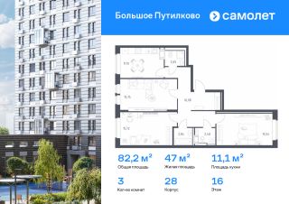 Предлагается 3-комнатная квартира комфорт-класса 82,16 кв.м в корпусе 28 на 16 этаже, в ЖК ''Большое Путилково''Квартира без отделки. Доступность опции ''отделка'' и возможность комплектации мебелью и декором уточняйте у застройщика.Приобрести квартиру возможно по специальным акциям от застройщика, с текущими условиями акций можно ознакомиться в блоке ''Акций''.Цена динамическая и может отличаться, уточняйте актуальность у застройщика.''Большое Путилково'' — масштабный жилой комплекс рядом с Алешкинским и Новогорским лесопарками. Мы уже построили и открыли 3 детских сада и школу, на первых этажах корпусов работают магазины, аптеки, кафе и пекарни. Удобное расположение проекта позволяет всего за 10 минут добраться до 4 станций метро.Во дворах обустроены детские площадки и зоны для отдыха. Все квартиры сдаются с готовой отделкой - переезжайте сразу после получения ключей!