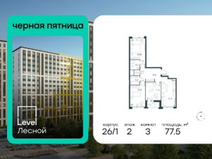 Цена указана с учётом скидки при 100%-й оплате, несубсидированной ипотеке, рассрочке (кроме программы ''Рассрочка 0%''). Субсидированная семейная ипотека. Полная стоимость кредита 20,963 - 23,237% годовых. Ставка 3,9% годовых. Первоначальный взнос от 20,01%. Сумма кредита до 12 млн. руб.В районе, утопающем в густой зелени лесов, многочисленных парков и скверов, продаётся 3-комнатная квартира площадью 88.10 кв.м без отделки. Квартира расположена на 9 этаже в жилом комплексе комфорт-класса Level Лесной (компания Level Group/Левел групп). Отличная транспортная доступность:- 25 мин. пешком до станции метро ''Пятницкое шоссе'',- 28 мин. на автобусе до станции метро и МЦД-2 ''Волоколамская'',- 11 мин. на авто до МКАД,- 25 мин. на авто до ТТК. Продуманный архитектурный проект:- Концепция проекта Level Лесной от бюро СПИЧ,- Высотность комплекса до 15 этажей с уникальными видами на лесные массивы и город, - Высота потолков до 3 м,- Современные окна высотой до 1,6 м, в части квартир предусмотрены окна в пол. Высота подоконников 0,6 м, Расположение:Level Лесной строится в зелёной зоне ближайшего Подмосковья, г.о. Красногорск в посёлке Отрадное. Шаговая и автомобильная доступность до метро и больших транспортных артерий города. За 25 минут вы дойдёте до станции метро ''Пятницкое шоссе'', а за 20 минут на машине сможете доехать до станции метро ''Тушинская''. Район окружен роскошной зеленью лесов и парковых зон, занимающих территорию свыше 1 000 гектаров. Помимо благоприятной экологии, здесь множество возможностей для активного отдыха и поддержания физической формы. Облагороженная территории с полностью развитой инфраструктурой. На территории проекта находится детский сад и школа ''Светлые Горы'', которая входит в список лучших частных школ от Forbes Education (по данным на 2023г.). Кроме того, в пешей доступности расположено ещё 8 детских садов, а также запланировано открытие современной муниципальной школы. В непосредственной близости находятся сетевые супермаркеты и локальные магазины, аптеки, клиники, почта, библиотека, салоны красоты, рестораны, спортивные и творческие секции, развивающие детские центры. В 12 минутах пешком расположен торговый парк ''Отрада'' с продуктовым и строительным гипермаркетами, магазинами, кинотеатром и развлечениями для детей. Внутренняя инфраструктура:Мы знаем, как важно, чтобы магазины и сервисы были всегда рядом. В сданных корпусах Level Лесной уже расположена полностью готовая развитая инфраструктура. На первых этажах корпуса 27 предусмотрено ещё 14 коммерческих помещений. Благоустройство:Продуманное пространство и аура приватного европейского городка рождают чувство лёгкости и расслабления у каждого, кто попадает на территорию проекта. Концепцию общественных площадок разработали в партнёрстве два архитектурных бюро: Highlight Architecture и SCAPE. В безопасных дворах без машин каждый обязательно найдёт себе место для вдохновения, отдыха и спорта.