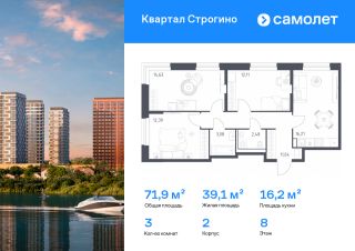 3-к, Квартал Строгино ЖК, 2 Показать на карте