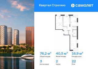 Строим кварталы для жизни с заботой о будущем. Предлагается 3-комнатная квартира комфорт-класса 76,15 кв.м в корпусе 2 на 9 этаже, в ЖК ''Квартал Строгино''Квартира с чистовой отделкой. Доступность дополнительных опций уточняйте у застройщика.Приобрести квартиру возможно по специальным акциям от застройщика, с текущими условиями акций можно ознакомиться в блоке ''Акций''.Цена динамическая и может отличаться, уточняйте актуальность у застройщика.В жилом комплексе ''Квартал Строгино'' вас ждет широкий выбор досуга. Рядом МКАД и выезд на Новорижское шоссе и станции метро ''Строгино'' и ''Мякинино''. В пешей доступности — Живописная бухта, можно доехать до ''Липовой Рощи'' и ''Серебряного бора''. На территории комплекса будут 2 детских сада, школа и поликлиника. Двор-парк с площадками, велодорожками и паркингами. В лобби есть помещения для колясок. Квартиры с готовой отделкой и видом на бухту.