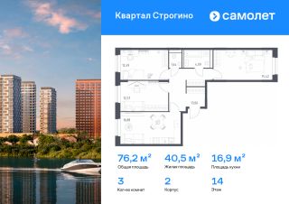 Строим кварталы для жизни с заботой о будущем. Предлагается 3-комнатная квартира комфорт-класса 76,18 кв.м в корпусе 2 на 13 этаже, в ЖК ''Квартал Строгино''Квартира без отделки. Доступность опции ''отделка'' и возможность комплектации мебелью и декором уточняйте у застройщика.Приобрести квартиру возможно по специальным акциям от застройщика, с текущими условиями акций можно ознакомиться в блоке ''Акций''.Цена динамическая и может отличаться, уточняйте актуальность у застройщика.В жилом комплексе ''Квартал Строгино'' вас ждет широкий выбор досуга. Рядом МКАД и выезд на Новорижское шоссе и станции метро ''Строгино'' и ''Мякинино''. В пешей доступности — Живописная бухта, можно доехать до ''Липовой Рощи'' и ''Серебряного бора''. На территории комплекса будут 2 детских сада, школа и поликлиника. Двор-парк с площадками, велодорожками и паркингами. В лобби есть помещения для колясок. Квартиры с готовой отделкой и видом на бухту.
