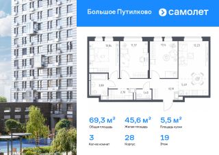 Строим кварталы для жизни с заботой о будущем. Предлагается 3-комнатная квартира комфорт-класса 69,32 кв.м в корпусе 28 на 19 этаже, в ЖК ''Большое Путилково''Квартира с чистовой отделкой. Доступность дополнительных опций уточняйте у застройщика.Приобрести квартиру возможно по специальным акциям от застройщика, с текущими условиями акций можно ознакомиться в блоке ''Акций''.Цена динамическая и может отличаться, уточняйте актуальность у застройщика.''Большое Путилково'' — масштабный жилой комплекс рядом с Алешкинским и Новогорским лесопарками. Мы уже построили и открыли 3 детских сада и школу, на первых этажах корпусов работают магазины, аптеки, кафе и пекарни. Удобное расположение проекта позволяет всего за 10 минут добраться до 4 станций метро.Во дворах обустроены детские площадки и зоны для отдыха. Все квартиры сдаются с готовой отделкой - переезжайте сразу после получения ключей!