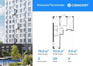 Строим кварталы для жизни с заботой о будущем. Предлагается 3-комнатная квартира комфорт-класса 76,62 кв.м в корпусе 28 на 9 этаже, в ЖК ''Большое Путилково''Квартира с чистовой отделкой. Доступность дополнительных опций уточняйте у застройщика.Приобрести квартиру возможно по специальным акциям от застройщика, с текущими условиями акций можно ознакомиться в блоке ''Акций''.Цена динамическая и может отличаться, уточняйте актуальность у застройщика.''Большое Путилково'' — масштабный жилой комплекс рядом с Алешкинским и Новогорским лесопарками. Мы уже построили и открыли 3 детских сада и школу, на первых этажах корпусов работают магазины, аптеки, кафе и пекарни. Удобное расположение проекта позволяет всего за 10 минут добраться до 4 станций метро.Во дворах обустроены детские площадки и зоны для отдыха. Все квартиры сдаются с готовой отделкой - переезжайте сразу после получения ключей!