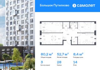 Строим кварталы для жизни с заботой о будущем. Предлагается 3-комнатная квартира комфорт-класса 80,21 кв.м в корпусе 28 на 14 этаже, в ЖК ''Большое Путилково''Квартира без отделки. Доступность опции ''отделка'' и возможность комплектации мебелью и декором уточняйте у застройщика.Приобрести квартиру возможно по специальным акциям от застройщика, с текущими условиями акций можно ознакомиться в блоке ''Акций''.Цена динамическая и может отличаться, уточняйте актуальность у застройщика.''Большое Путилково'' — масштабный жилой комплекс рядом с Алешкинским и Новогорским лесопарками. Мы уже построили и открыли 3 детских сада и школу, на первых этажах корпусов работают магазины, аптеки, кафе и пекарни. Удобное расположение проекта позволяет всего за 10 минут добраться до 4 станций метро.Во дворах обустроены детские площадки и зоны для отдыха. Все квартиры сдаются с готовой отделкой - переезжайте сразу после получения ключей!