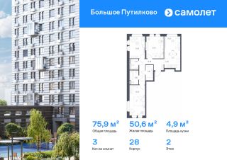 Строим кварталы для жизни с заботой о будущем. Предлагается 3-комнатная квартира комфорт-класса 75,91 кв.м в корпусе 28 на 2 этаже, в ЖК ''Большое Путилково''Квартира с чистовой отделкой. Доступность дополнительных опций уточняйте у застройщика.Приобрести квартиру возможно по специальным акциям от застройщика, с текущими условиями акций можно ознакомиться в блоке ''Акций''.Цена динамическая и может отличаться, уточняйте актуальность у застройщика.''Большое Путилково'' — масштабный жилой комплекс рядом с Алешкинским и Новогорским лесопарками. Мы уже построили и открыли 3 детских сада и школу, на первых этажах корпусов работают магазины, аптеки, кафе и пекарни. Удобное расположение проекта позволяет всего за 10 минут добраться до 4 станций метро.Во дворах обустроены детские площадки и зоны для отдыха. Все квартиры сдаются с готовой отделкой - переезжайте сразу после получения ключей!