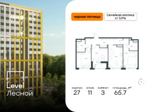Цена указана с учётом скидки при 100%-й оплате, несубсидированной ипотеке, рассрочке (кроме программы ''Рассрочка 0%''). Субсидированная семейная ипотека. Полная стоимость кредита 20,963 - 23,237% годовых. Ставка 3,9% годовых. Первоначальный взнос от 20,01%. Сумма кредита до 12 млн. руб.В районе, утопающем в густой зелени лесов, многочисленных парков и скверов, продаётся 3-комнатная квартира площадью 65.70 кв.м с отделкой white box. Квартира расположена на 11 этаже в жилом комплексе комфорт-класса Level Лесной (компания Level Group/Левел групп). Отличная транспортная доступность:- 25 мин. пешком до станции метро ''Пятницкое шоссе'',- 28 мин. на автобусе до станции метро и МЦД-2 ''Волоколамская'',- 11 мин. на авто до МКАД,- 25 мин. на авто до ТТК. Продуманный архитектурный проект:- Концепция проекта Level Лесной от бюро СПИЧ,- Высотность комплекса до 15 этажей с уникальными видами на лесные массивы и город, - Высота потолков до 3 м,- Современные окна высотой до 1,6 м, в части квартир предусмотрены окна в пол. Высота подоконников 0,6 м, Расположение:Level Лесной строится в зелёной зоне ближайшего Подмосковья, г.о. Красногорск в посёлке Отрадное. Шаговая и автомобильная доступность до метро и больших транспортных артерий города. За 25 минут вы дойдёте до станции метро ''Пятницкое шоссе'', а за 20 минут на машине сможете доехать до станции метро ''Тушинская''. Район окружен роскошной зеленью лесов и парковых зон, занимающих территорию свыше 1 000 гектаров. Помимо благоприятной экологии, здесь множество возможностей для активного отдыха и поддержания физической формы. Облагороженная территории с полностью развитой инфраструктурой. На территории проекта находится детский сад и школа ''Светлые Горы'', которая входит в список лучших частных школ от Forbes Education (по данным на 2023г.). Кроме того, в пешей доступности расположено ещё 8 детских садов, а также запланировано открытие современной муниципальной школы. В непосредственной близости находятся сетевые супермаркеты и локальные магазины, аптеки, клиники, почта, библиотека, салоны красоты, рестораны, спортивные и творческие секции, развивающие детские центры. В 12 минутах пешком расположен торговый парк ''Отрада'' с продуктовым и строительным гипермаркетами, магазинами, кинотеатром и развлечениями для детей. Внутренняя инфраструктура:Мы знаем, как важно, чтобы магазины и сервисы были всегда рядом. В сданных корпусах Level Лесной уже расположена полностью готовая развитая инфраструктура. На первых этажах корпуса 27 предусмотрено ещё 14 коммерческих помещений. Благоустройство:Продуманное пространство и аура приватного европейского городка рождают чувство лёгкости и расслабления у каждого, кто попадает на территорию проекта. Концепцию общественных площадок разработали в партнёрстве два архитектурных бюро: Highlight Architecture и SCAPE. В безопасных дворах без машин каждый обязательно найдёт себе место для вдохновения, отдыха и спорта.