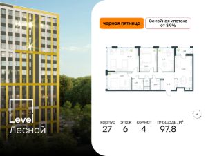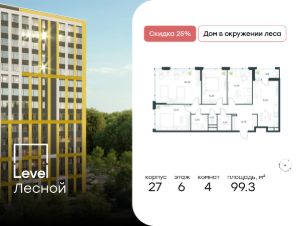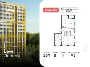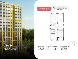 Цена указана с учётом скидки при 100%-й оплате, несубсидированной ипотеке, рассрочке (кроме программы ''Рассрочка 0%''). Субсидированная семейная ипотека. Полная стоимость кредита 20,963 - 23,237% годовых. Ставка 3,9% годовых. Первоначальный взнос от 20,01%. Сумма кредита до 12 млн. руб.В районе, утопающем в густой зелени лесов, многочисленных парков и скверов, продаётся 4-комнатная квартира площадью 87.50 кв.м с отделкой white box. Квартира расположена на 2 этаже в жилом комплексе комфорт-класса Level Лесной (компания Level Group/Левел групп). Отличная транспортная доступность:- 25 мин. пешком до станции метро ''Пятницкое шоссе'',- 28 мин. на автобусе до станции метро и МЦД-2 ''Волоколамская'',- 11 мин. на авто до МКАД,- 25 мин. на авто до ТТК. Продуманный архитектурный проект:- Концепция проекта Level Лесной от бюро СПИЧ,- Высотность комплекса до 15 этажей с уникальными видами на лесные массивы и город, - Высота потолков до 3 м,- Современные окна высотой до 1,6 м, в части квартир предусмотрены окна в пол. Высота подоконников 0,6 м, Расположение:Level Лесной строится в зелёной зоне ближайшего Подмосковья, г.о. Красногорск в посёлке Отрадное. Шаговая и автомобильная доступность до метро и больших транспортных артерий города. За 25 минут вы дойдёте до станции метро ''Пятницкое шоссе'', а за 20 минут на машине сможете доехать до станции метро ''Тушинская''. Район окружен роскошной зеленью лесов и парковых зон, занимающих территорию свыше 1 000 гектаров. Помимо благоприятной экологии, здесь множество возможностей для активного отдыха и поддержания физической формы. Облагороженная территории с полностью развитой инфраструктурой. На территории проекта находится детский сад и школа ''Светлые Горы'', которая входит в список лучших частных школ от Forbes Education (по данным на 2023г.). Кроме того, в пешей доступности расположено ещё 8 детских садов, а также запланировано открытие современной муниципальной школы. В непосредственной близости находятся сетевые супермаркеты и локальные магазины, аптеки, клиники, почта, библиотека, салоны красоты, рестораны, спортивные и творческие секции, развивающие детские центры. В 12 минутах пешком расположен торговый парк ''Отрада'' с продуктовым и строительным гипермаркетами, магазинами, кинотеатром и развлечениями для детей. Внутренняя инфраструктура:Мы знаем, как важно, чтобы магазины и сервисы были всегда рядом. В сданных корпусах Level Лесной уже расположена полностью готовая развитая инфраструктура. На первых этажах корпуса 27 предусмотрено ещё 14 коммерческих помещений. Благоустройство:Продуманное пространство и аура приватного европейского городка рождают чувство лёгкости и расслабления у каждого, кто попадает на территорию проекта. Концепцию общественных площадок разработали в партнёрстве два архитектурных бюро: Highlight Architecture и SCAPE. В безопасных дворах без машин каждый обязательно найдёт себе место для вдохновения, отдыха и спорта.