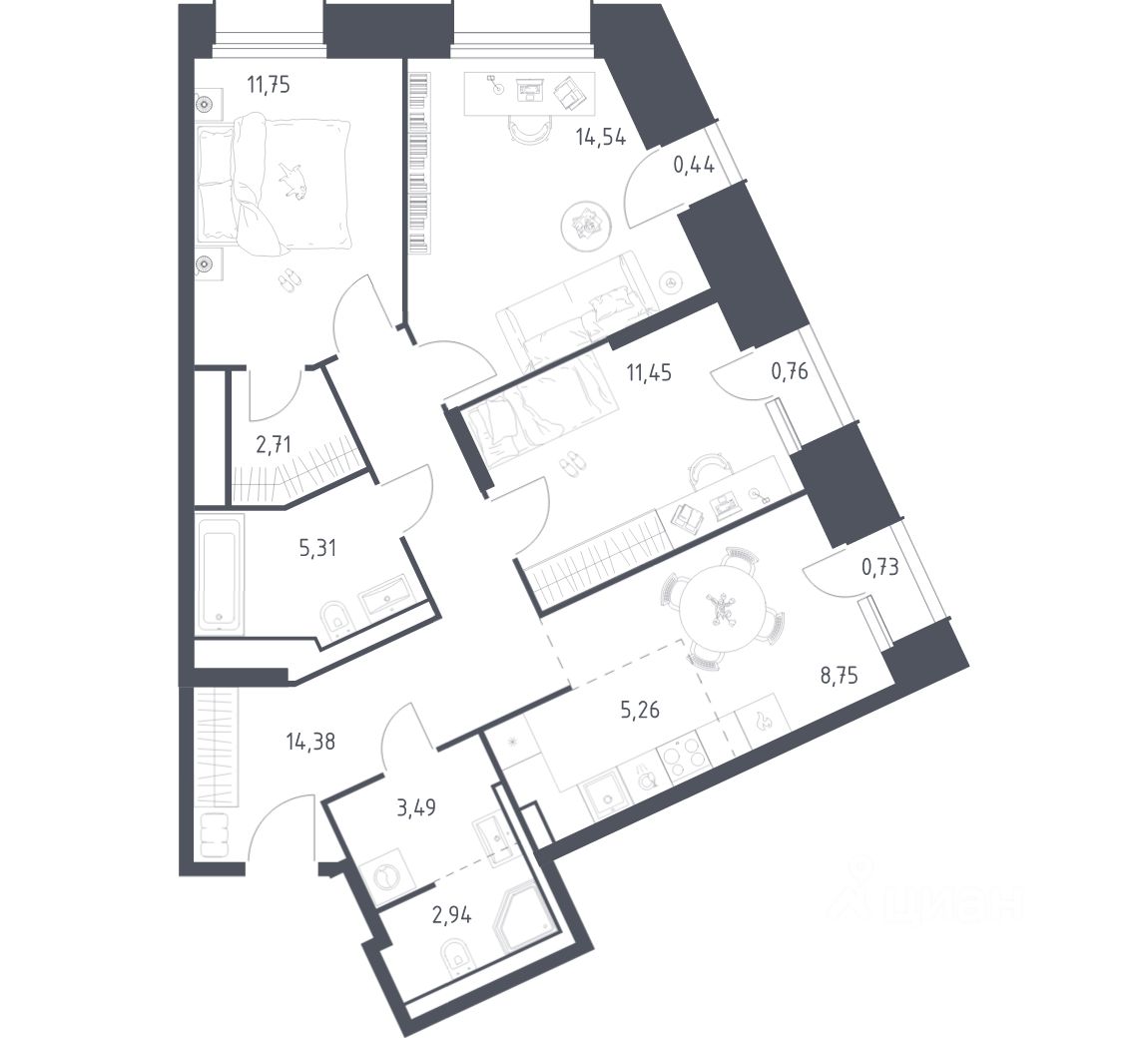 58 м² · Этаж 14 из 30