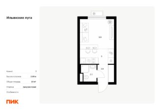 Продаётся квартира-студия площадью 20,7 кв.м на 8 этаже 9 этажного дома (Корпус 4.3, Секция 2) проекта ПИК Ильинские луга. Светлый просторный подъезд на уровне земли, функциональная планировка, большие окна, предчистовая отделка. Жилой район ''Ильинские луга'' находится в 10 километрах от МКАД по Новорижскому шоссе, в 20 минутах на автомобиле от станций метро ''Волоколамская'', ''Тушинская'' и ''Строгино''. В будущем ближе к проекту, в 9 минутах пути на машине, откроется станция ''Ильинская'' Рублёво-Архангельской линии, которая будет соединять Арбатско-Покровскую линию и Большую кольцевую линию.Сейчас в квартале начались продажи в корпусах 3.2, 3.3, 3.4, 3.5 и 3.6.''Ильинские луга'' — масштабный проект, в который входит девять детских садов, четыре школы и поликлиника. Он строится в престижном и экологичном районе среди лесов и памятников природы. За 5 минут от жилого квартала можно доехать до Рублёво-Успенского шоссе, а за 30 минут — до центра Москвы. До крупного торгового центра ''РИГАМОЛЛ'' всего 5 минут на автомобиле, а до ТЦ ''Твой дом'' и гипермаркета ''Глобус'' — 10 минут.В ''Ильинских лугах'' строятся только девятиэтажные дома — такая архитектура соответствует спокойной жизни за городом. В каждом дворе-парке есть места для отдыха, детские и спортивные площадки. А ещё, здесь уже открыт большой PlayHub ''Гравити'' — современное игровое пространство с космической тематикой, холмами, зонами для игр и отдыха жителей любого возраста.На первых этажах уже работают магазины, кафе и пекарни.Места для отдыха от ''Ильинских лугов'' тоже недалеко: 10 минут на машине — и вы в музее-усадьбе ''Архангельское''. Также рядом находится Лохин остров — памятник природы, где водятся речные черепахи, есть места для кемпинга и возможность сплавиться по реке. Артикул 1011963 (Застройщик ООО ''СЗ ''ГРАДОЛИМП'')