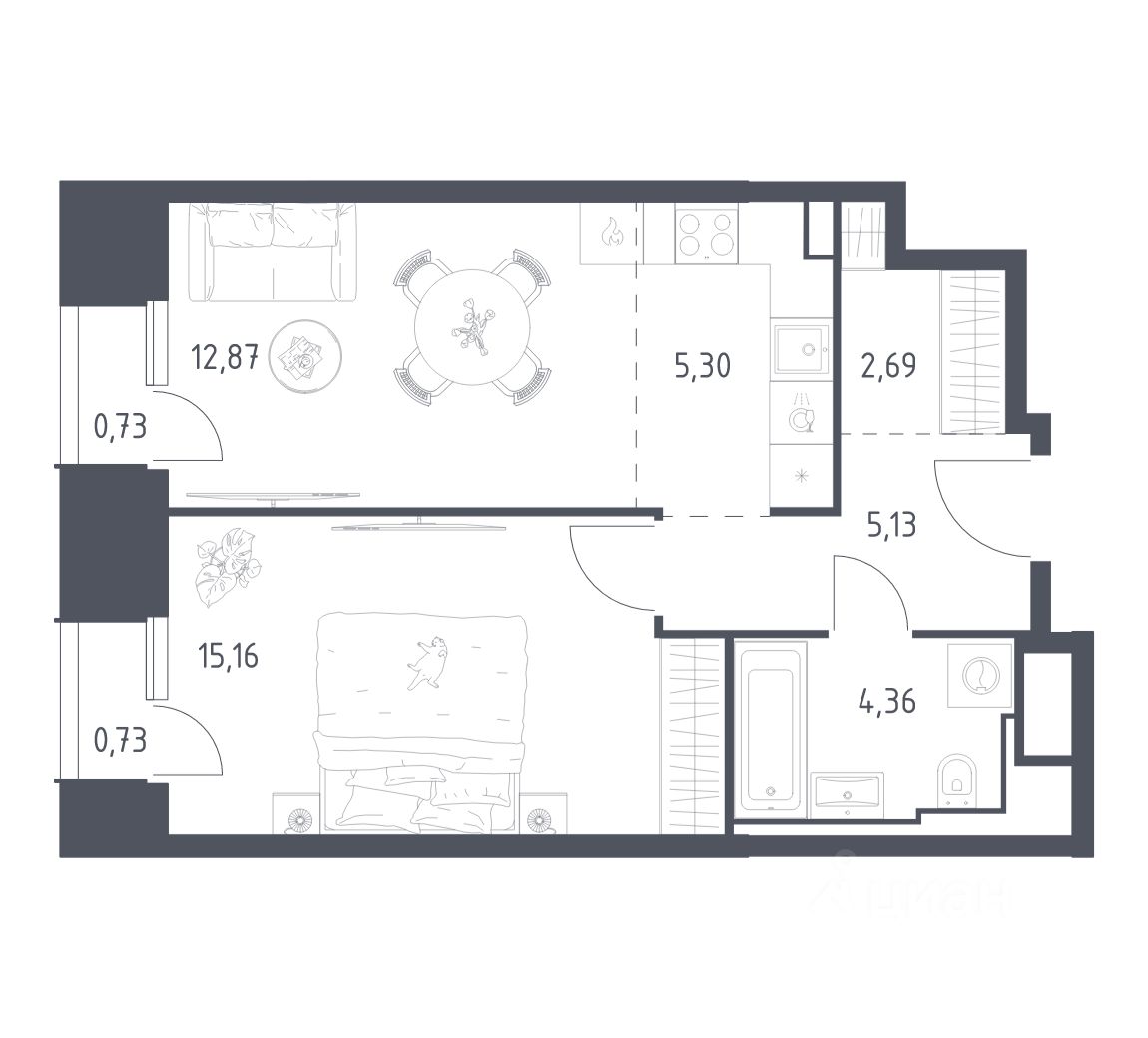 51 м² · Этаж 15 из 24