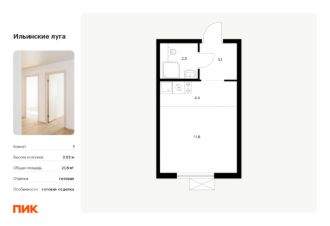 Продаётся квартира-студия площадью 19,9 кв.м на 9 этаже 9 этажного дома (Корпус 2.10, Секция 1) проекта ПИК Ильинские луга. Светлый просторный подъезд на уровне земли, функциональная планировка, большие окна, c отделкой. Жилой район ''Ильинские луга'' находится в 10 километрах от МКАД по Новорижскому шоссе, в 20 минутах на автомобиле от станций метро ''Волоколамская'', ''Тушинская'' и ''Строгино''. В будущем ближе к проекту, в 9 минутах на машине, откроется станция ''Ильинская''. ''Ильинские луга'' - масштабный проект, в который входит девять детских садов, четыре школы и поликлиника. Он строится в престижном и экологичном районе среди лесов и памятников природы. За 5 минут от жилого квартала можно доехать до Рублёво-Успенского шоссе, а за 30 минут - до центра Москвы. До крупного торгового центра ''РИГАМОЛЛ'' всего 5 минут на автомобиле, а до ТЦ ''Твой дом'' и гипермаркета ''Глобус'' - 10 минут. В корпусе 1.12 начались продажи квартир с чистовой отделкой - всё готово, и можно будет заселиться сразу после сделки. Приобрести квартиру можно с выгодой до 6%.Для тех, кто хочет сделать ремонт самостоятельно, открыты продажи в корпусе 1.11 - он также готов к заселению и предлагает квартиры без отделки, где вы сможете реализовать любые дизайнерские идеи. В ''Ильинских лугах'' строятся только девятиэтажные дома - такая архитектура соответствует спокойной жизни за городом. В каждом дворе-парке есть места для отдыха, детские и спортивные площадки. А ещё, здесь уже открыт большой PlayHub ''Гравити'' - современное игровое пространство с космической тематикой, холмами, зонами для игр и отдыха жителей любого возраста. На первых этажах уже работают магазины, кафе и пекарни. Места для отдыха от ''Ильинских лугов'' тоже недалеко: 10 минут на машине - и вы в музее-усадьбе ''Архангельское''. Также рядом находится Лохин остров - памятник природы, где водятся речные черепахи, есть места для кемпинга и возможность сплавиться по реке. Артикул 911964 (Застройщик ООО ''СЗ ''ГРАДОЛИМП'')