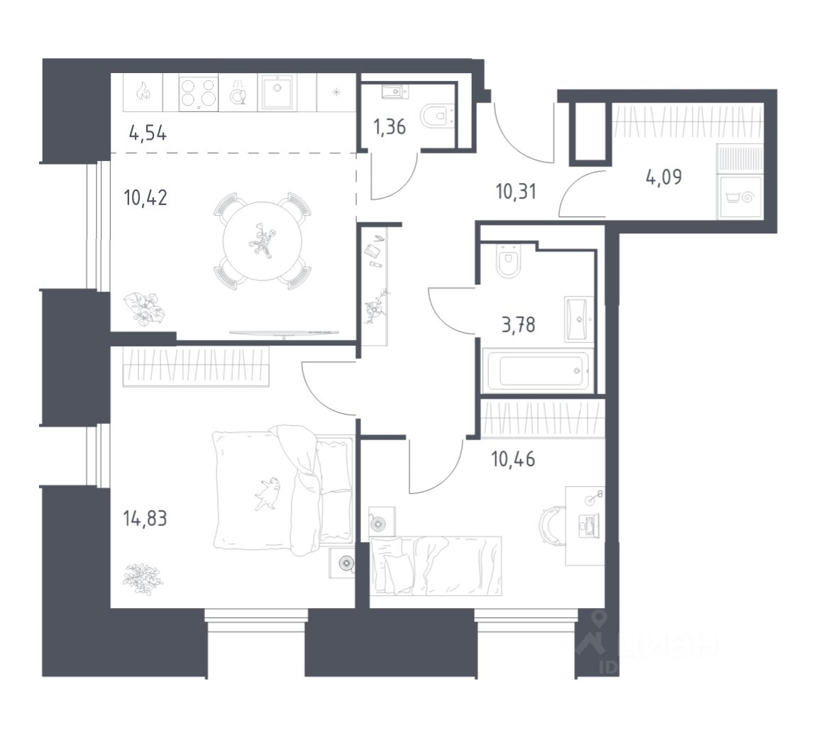 В продаже 2-комнатная квартира в корпусе 2 ЖК 'Квартал Строгино'. Квартира располагается на 10 этаже, общая площадь 55.0 м2.